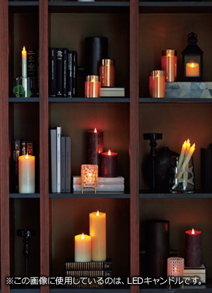 LEDキャンドルは実際の炎のゆらぎを再現。本棚など、火を使いにくい場所でも問題なく、キャンドルのようにほのかな燈りを楽しめます