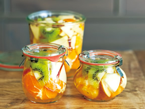 お口直しのフルーツのピクルスは、多めに作って、小びんに分けてお土産に。