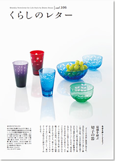 ガラスの表面に模様が刻まれ、光を浴びるとキラキラと美しく輝く切子の器。日本の伝統的な切子といえば、古典文様が刻まれた華やかで重厚な江戸切子や薩摩切子などをイメージしますが、現代的なデザインの切子も人気です。鮮やかな赤や涼しげな青など、カラフルなガラスに円や草花などのモチーフが刻まれた切子作家?吉田順子さんの器は、江戸切子の技術を生かしながらも、愛らしく軽やかな印象。冷たいドリンクやデザートをいっそうおいしく、夏のテーブルを涼やかに演出してくれそうです。