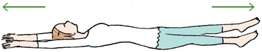 両手を頭の上に上げて、手と足を引き離すように全身を伸ばす。