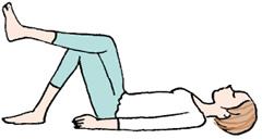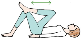 あおむけになって、両膝を曲げて両腕でゆっくりと胸に引きつけて體を小さく丸める。