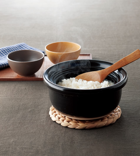 コロンと愛らしい形の土鍋のごはん釜は、三重県四日市市の萬古焼のブランド4th-marketのもの。萬古焼の特性は、耐熱性に優(yōu)れた陶土にあり、土鍋のシェアは國內(nèi)の80%以上を誇ります。