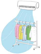 キッチンでの調理の際や食器洗浄機からも水蒸気が発生するので、必ず換気扇を回します。洗濯の室內干しはなるべく避け、乾燥機などを利用しましょう。干す場合は、エアコンや除濕器を活用して、十分な除濕と換気を確保。