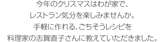 「クリスマスだからといって特別な料理を作らなくても、普段の料理をちょっと工夫するだけで、華やかなごちそうになります」と志賀さん。