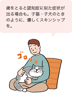 筋肉が落ちて體つきが変わったり、動作が鈍くなる、白髪が増える、爪とぎをしなくなるなどが老化のサインです。高齢になると心臓、腎臓、関節、口腔の病気が増え、がんや認知癥になることもあります。