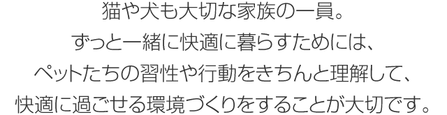![[住まいかた暮らしかた]ペットと一緒に、快適な暮らしを](images/comfortableLife/title.jpg)