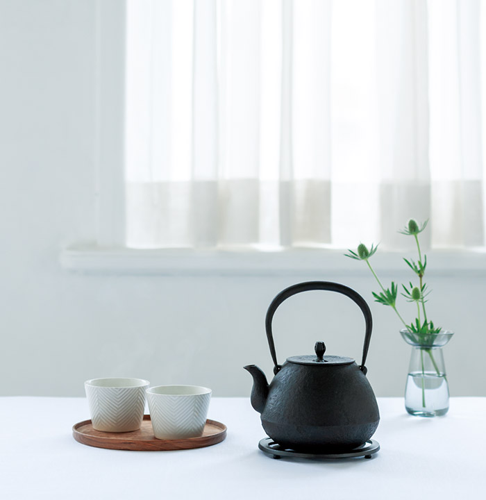 鉄瓶で沸かした湯を適溫に冷ました、おいしい白湯(さゆ)で一日を始めませんか。朝の目覚めに白湯を飲むと體が溫まり、內臓も活性化して代謝力もアップするといわれています。鉄瓶で沸かした湯は、水道水に含まれる塩素が分解?除去され、まろやかな味わいになります。さらに鉄瓶を使い込むうちに、湯に含まれるカルシウムなどのミネラル成分が沈著して、內側に湯あかが付くことで、一層おいしくなるといいます。また、鉄瓶で沸かした湯には、體に吸収されやすい「二価鉄(にかてつ)」と呼ばれる鉄が含まれ、鉄分補給にも役立ちます。