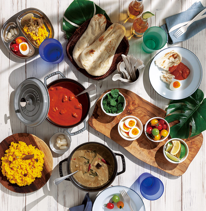 家族がそろう休日は、爽やかな風を浴びながら、庭やバルコニーでごはんを楽しんでみませんか。最近では、家庭のベランダなどでキャンプ気分を楽しむ“ベランピング”も注目を集めています。キッチンで料理して鍋ごとテーブルへ運べば、バーベキューよりも手軽。友人たちを招いてカレーパーティーで盛り上がるのもいいですね。器やカトラリーにアウトドア用品を使えば、ちょっとしたキャンプ気分も味わえます。遠くへ出掛けなくても、居心地のいいわが家で気軽に外ごはん。開放的な気分ですてきな時間を過ごしましょう。