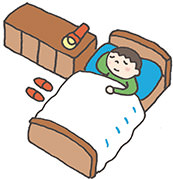 寢室や子ども部屋に家具を置く場合は、なるべく背の低い家具に。家具がベッドの上に倒れたり、出入り口をふさいだりしないように、向きや配置を工夫。また、窓ガラスのそばにベッドを配置するのは避けましょう。