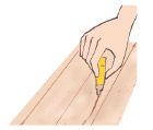 - (3)モップにワックスをつけ、部屋の奧から手前に向かって板目に沿ってかけます。