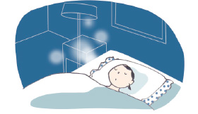 寢る前に換気をし、就寢中も寢室のドアを少し開けておくなどの工夫を。