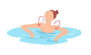 水中で體を動かすと陸上の3~4倍の負荷がかかります。これを利用してストレッチなどをすれば、筋肉に負荷がかかり、手軽に運動療法効果が得られます。