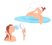 溫かいお湯に浸かると毛穴が開き、汚れや不要な皮脂を洗い流します。