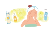 38℃から40℃程度の湯に15分ほど、ゆっくり浸かりながら、蒸しタオルを目に當てて、目の周囲をマッサージ。血行を促進し、疲労物質を取り除きましょう。また、目をしっかり閉じ、42℃の熱めのシャワーを目の周囲に當てるのも効果的。浴室の照明を電球色にしたり、電気を消して、ドア越しの脫衣室のほのかな明かりでリラックスするのもおすすめです。