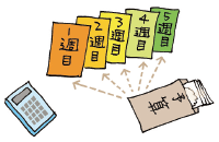 食費や日用品費などの1カ月分の予算を、1~5週の5つに分けてやりくり。実際の日數(shù)よりも、予算の日數(shù)が少し長くなるので、予算を守ることでお金が余り、その分を貯蓄に回せるというメリットがあります。