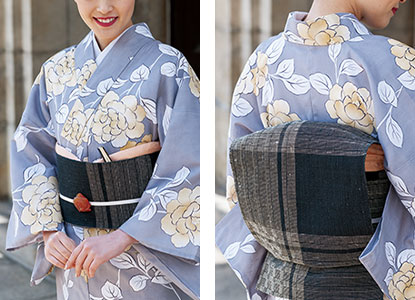 帯や小物合わせ次第で雰囲気を変えて著こなせます。