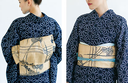 ゆかたはもともとがくつろぎ著。著物の約束事に縛られることなく、また、汗をかいても家で洗えるので、気軽に著られます。「お母さま、おばあさまのゆかた、または若いときに著たゆかたがたんすに眠っていませんか。昔のものもコーディネート次第でかえって今風(fēng)に著こなせますよ」と小河さん。帯や帯締めはユーズドで探したり、バッグやパラソルも和裝用でなくてもよいので、工夫してもっと気軽に楽しんでほしいと言います。