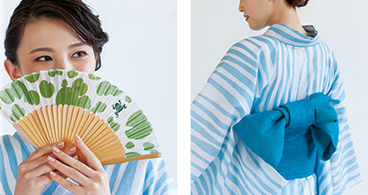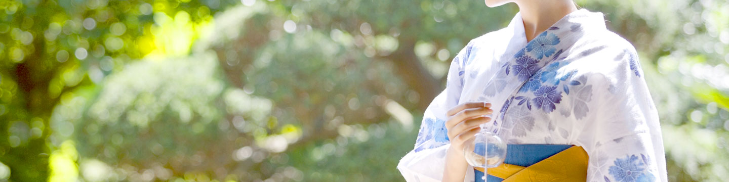 実際にゆかたを著てみると意外に涼しいもの。そして見る人にも涼しさを感じてもらうのが、ゆかたの粋なおしゃれかもしれません。