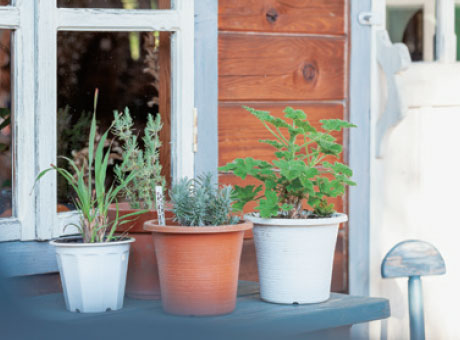 枯らしてしまう主な原因は水のやりすぎ。土の表面が乾き、ハーブがうなだれてきたぐらいのタイミングで、鉢の底から水が出るくらいたっぷりとやります。夏場は涼しくなる夕方以降に。 - ミントはひと鉢、1品種に