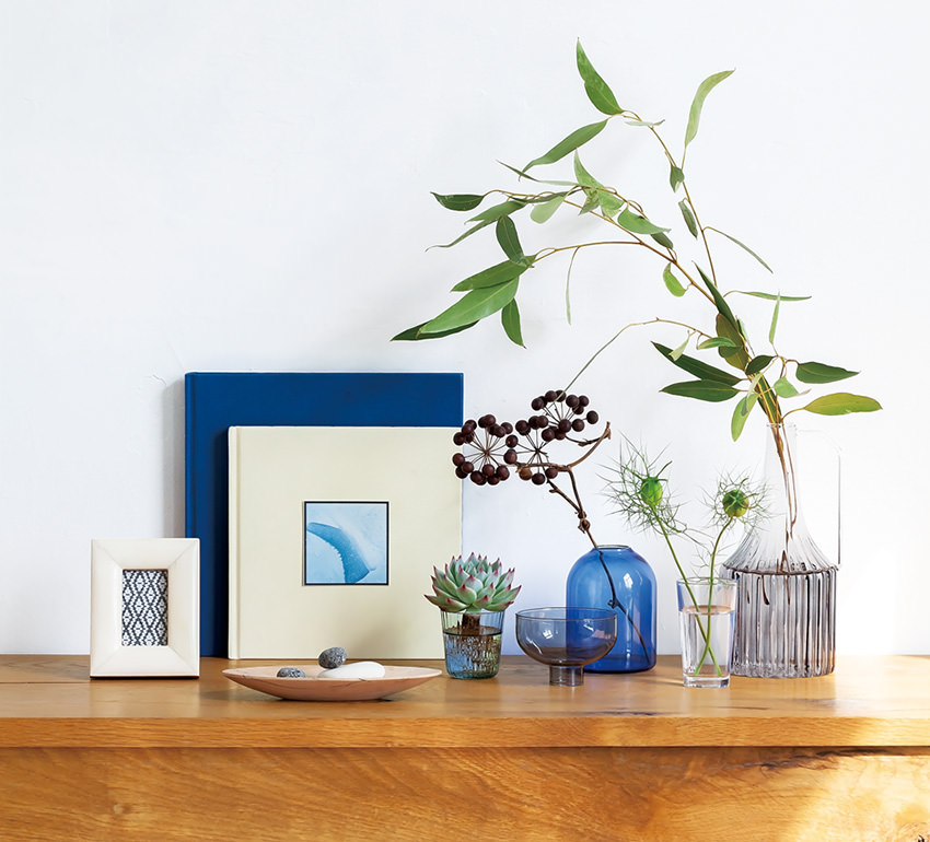 夏の季語「夏座敷」とは、ふすまや障子などを取り外して風(fēng)通しを良くし、住まいを夏向きにしつらえること。暑い夏を心地良く過ごすための昔ながらの日本の知恵です。エアコンが普及し、快適に暮らせる現(xiàn)代だからこそ、五感で涼を楽しむ夏の暮らしを大切にしたいもの。模様替えをするのは大変ですが、例えばリビングや玄関などの目に付くところに、透明感のあるガラスや寒色系の小物を飾るだけでも涼やかさを感じることができます。また、フラワーベースにグリーンを生けると清々しい空間になります。グラスやガラス鉢などの器も活用してコーディネートしてもすてきです。小さな夏支度で視覚からわが家に涼を呼び込みましょう。
