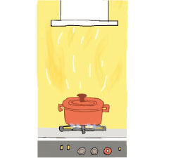 油汚れは溫度が下がると固まり、落としにくくなります。特に頑固な汚れになりやすい換気扇は早めにお掃除を。フィルターやファンなどのパーツは外して浸け置き洗いをしましょう。シンクにゴミ袋を広げ、ぬるま湯とアルカリ性洗剤または重曹を入れます。外したパーツを2時間ぐらい浸けておきます。汚れがゆるんだらゴミ袋の中で歯ブラシなどで汚れをこすり落とし、お湯で洗剤分を洗い流します。