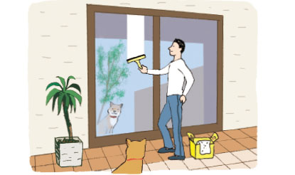 窓ガラスの外側(cè)には、雨風(fēng)に混ざった砂や土などの汚れが付著しやすく、そのまま放置しておくと固まって落としにくくなります。臺風(fēng)シーズンが終わったら、窓拭きをしましょう。窓ガラスの掃除は汚れが見えやすいくもりの日を選び、汚れが多い外側(cè)から始めます。まず雑巾を水で固く絞り、大きな汚れを拭き取ります。その後、ぬれ雑巾や霧吹きで窓ガラスをしっかりぬらし、スクイージーをかければ、洗剤を使わなくてもピカピカに。サッシ下レールやシャッターレールも柔らかい歯ブラシ等で汚れを落とし、水洗いをしておきましょう。