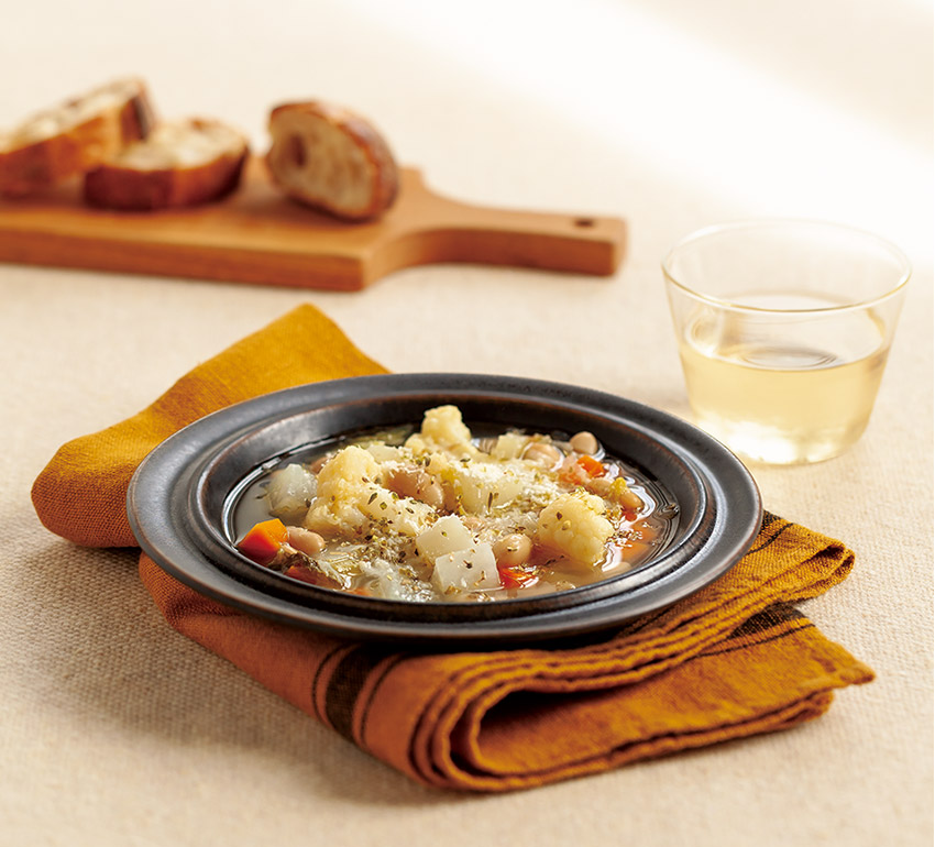 ※「冬野菜と白いんげん豆のスープ」作り方は下記に掲載。