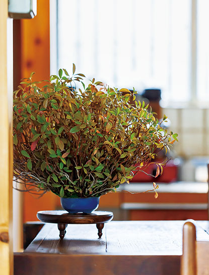 「盆栽は型にとらわれず、自由に楽しめるもの」と丈洋さん。ご自宅には、鉢からこぼれんばかりに育ったヤブコウジなど、ユニークな盆栽が。のびのびと育ったその姿は、暮らしの中に溶け込み、気持ちのいい空間をつくり出しています。
