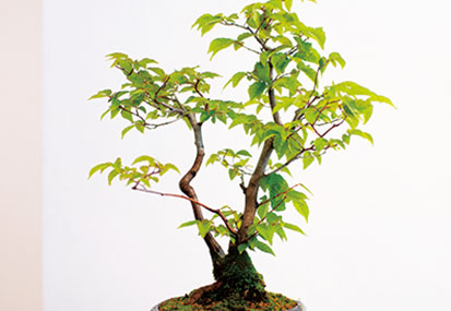 「盆栽を育てるのは難しそうとよく言われますが、水のやり方や基本的な剪定(せんてい)の仕方さえ知っておけば、初心者でも大丈夫」と久実子さん?!袱蓼氦檄h境やライフスタイルに合った、育てやすい種類を選ぶといいですね。家を空けがちでこまめに水がやれない場合は、水持ちのいい深めの鉢に仕立てるなどの工夫を」。おすすめは季節感が楽しめる落葉樹。特にカエデは育てやすく、秋には紅葉が楽しめます。