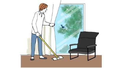 ホコリは人が活動的な日中は舞い上がり、夜間にゆっくりと床へ落ちていきます。そのため床掃除は、朝一番にフロアモップをかけるのが効率的。いきなり掃除機をかけると舞い上げてしまいます。また、ホコリは上から下に落ちるので、棚の上などにたまったホコリを拭き取るときは床掃除の前に。ホコリの原因となるソファやクッションなどの布製品を革製やビニール製に替えたり、帰宅時は家に入る前に全身を軽くはたいて、ホコリを減らすことも大切です。