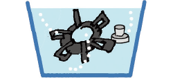 ※塩素系漂白剤を使用するときは換気をし、ゴム手袋をはめること。酸性タイプの洗剤と混ぜると有毒なガスが発生し危険なので厳禁。各洗剤の注意事項をよく確認の上、使用してください。