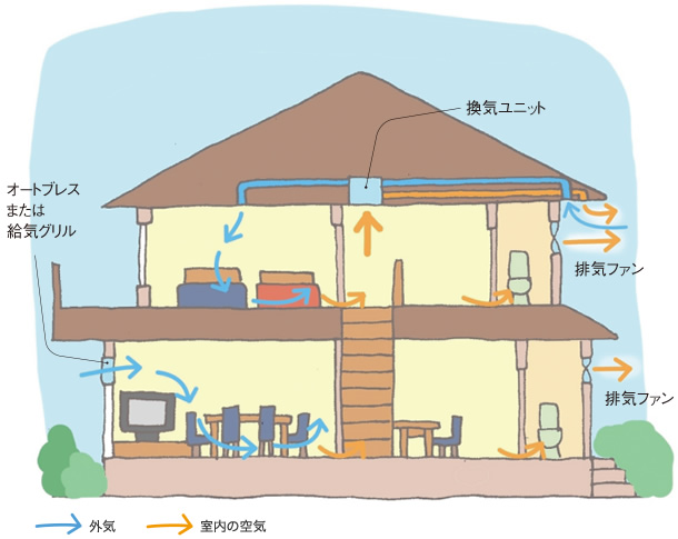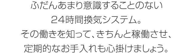 室內(nèi)の空気を常にきれいに保つために、住宅全體の空気を計畫的に一定周期で換気するのが、24時間換気システムです。住宅の高気密化にともなう化學(xué)物質(zhì)によるシックハウス癥候群の増加が問題になり、2003年の建築基準法改正で新築住宅への24時間換気システムの設(shè)置が義務(wù)づけられました。24時間つけっ放しにすることで、きれいな空気環(huán)境を保つ効果を発揮します。