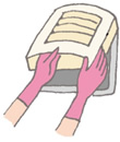 水または中性洗剤を入れたぬるま湯に浸した布で汚れを拭き取った後、水拭き、から拭きをします。 -