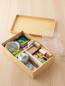 ファイリングに使用するクリップやラベル、ふせんなどの細かな文房具類は、仕切りやケースを使って分類し、箱にまとめておきます。作業するときに箱ごと持ち運べます。