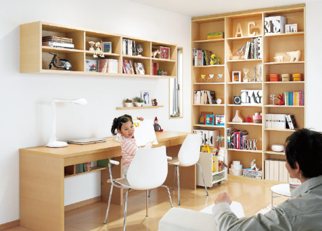 暮らしに必要な書類は一か所にまとめ、整理整頓のルールを家族みんなで共有しておけば、いざというときにさっと取り出せ、活用できます。例えば、みんなが集まるリビングやダイニングの片隅にデスクを置いて書斎コーナーに。書類とともにパソコンや本などを置いたり、家族のスケジュールや伝言などもわかるようにしておけば、コミュニケーションスペースとしても役立ちます。