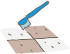 床面が乾いたら、まずはきれいなぞうきんにワックスをつけ、部屋の隅や家具のまわりにワックスをかけます。