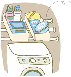 洗濯用品の収納場所がないときは、洗濯機(jī)の上のスペースを有効活用。また、洗濯ばさみやハンガーなどは干す場所の近くに収納すれば、洗濯動線もスムーズです。