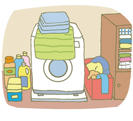 洗濯物や洗剤などの洗濯用品を床に置いたり、タオルやバスマットを洗濯機(jī)の上にのせていませんか。それぞれのものを収納するスペースが確保できていないからかもしれません。