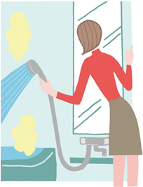 急激な溫度差で起こるヒートショックを防ぐためには、脫衣室や浴室をあらかじめ暖めておくこと。暖房機能付浴室換気乾燥機の暖房機能を使うか、入浴前に衣服を著た狀態で、熱めのシャワーを浴室の壁全體にかけておきます。
