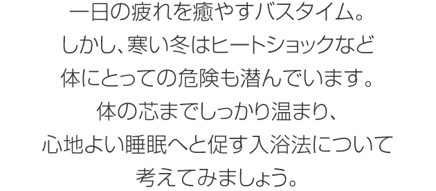 ![[住まいかた暮らしかた]寒い冬のための、快適入浴術](images/comfortableLife/title.jpg)