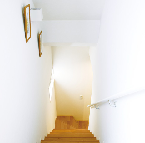 窓を設けることで、階段の採光も十分。好きな絵を飾って演出しています