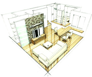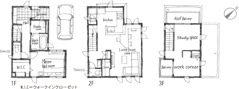 土地の特性とご夫妻の希望をもとに、設計者が描いた2階部分のスケッチ