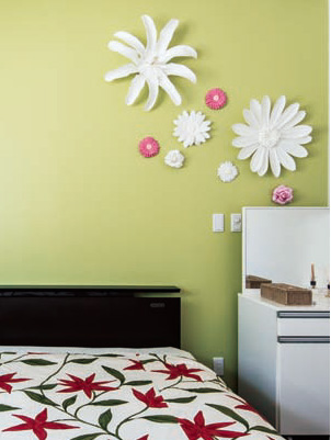 フラワーモチーフの壁飾りが主寢室を彩ります