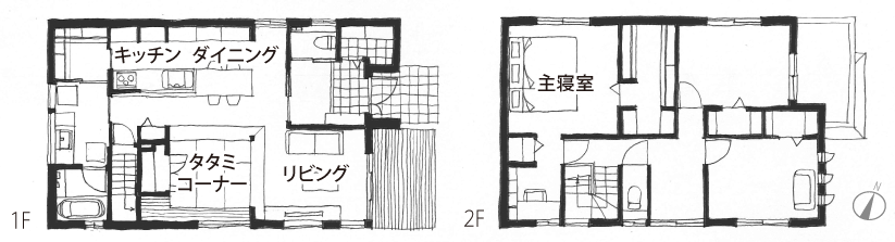住まいづくりの中心になったのは夫の優(yōu)介さん。1階はリビング、ダイニング、キッチン、そしてタタミコーナーを一體化した機(jī)能的な間取りを希望しました。面積はコンパクトですが、xevoΣ(ジーヴォシグマ)の2m72㎝の天井高と、化粧天井のアクセントが空間を美しくまとめ、広く感じさせます。