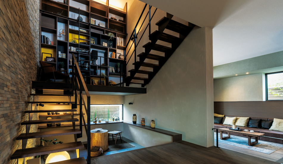 また、階段と吹き抜けを組み合わせて中2階を設(shè)けると、1階と2階をゆるやかに繋げられます。上下移動(dòng)のための通路だった階段がギャラリーやくつろぎのスペースに変わり、まるで第二のリビングに。1階や2階にいる家族と目線の高さが異なる場(chǎng)所で、それぞれの時(shí)間を過(guò)ごしながらも同じ空間を共有できます。