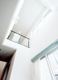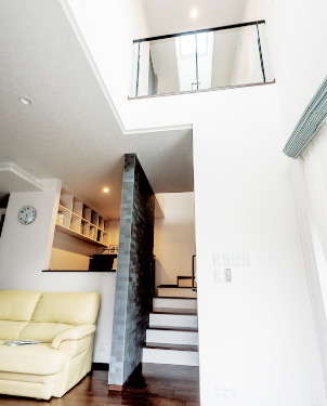 リビングとスキップフロア、2階ホールをつなげた、コミュニケーションが取りやすい間取り