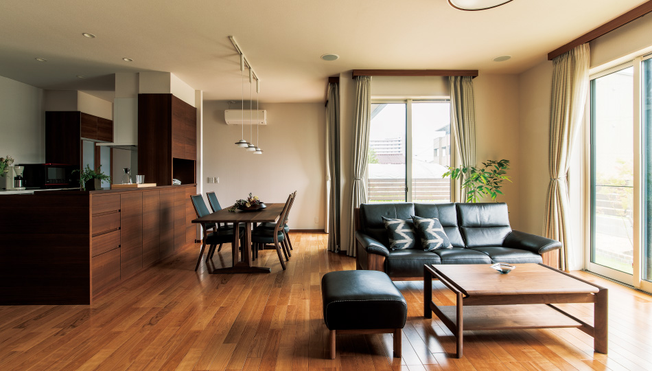 インテリアはブラックチェリーの床を中心にコーディネート。2m72cmの天井高が、ひときわ広さを感じさせます