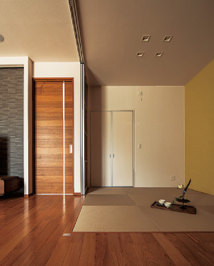 リビングの一角には、幼いお孫さんが遊ぶのにぴったりのタタミコーナー。キッチンからもダイニングからも、遊んでいる姿をいつも見守ることができます。段差を設けずフラットな床のため、リビング?ダイニングと一體感のある開放的な空間に。また、パーティションを閉じれば獨立した一間にもなります。