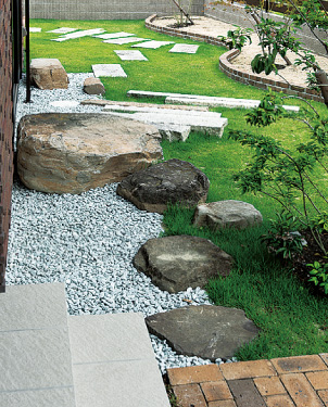 また、庭にもこだわり、建物と同時に計畫していきました。敷石や沓脫ぎ石は舊邸の庭に配していたもの。Y家の歴史を次代へ引き継ぐように、新しい庭で靜かに存在感を放っています。