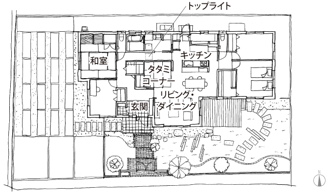 Yさまご夫妻がご新居の計畫で大切にしたのは、子どもや孫たちが帰省して集える家にすることでした。そこで、集まった子どもたちの家族が気兼ねなく泊まれる部屋を確保。
